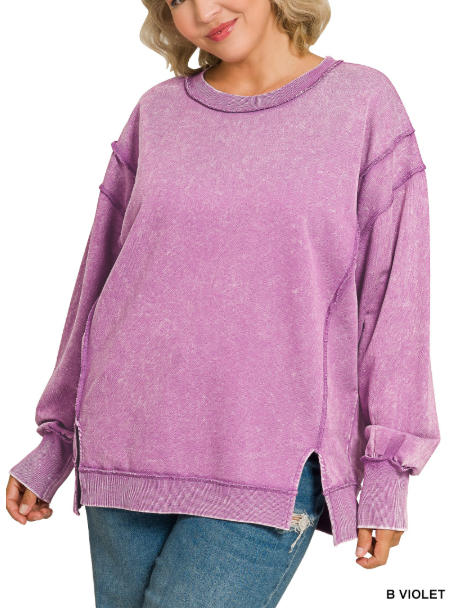 Z1 Zenana Violet Mineral Washed French Terry Pullover